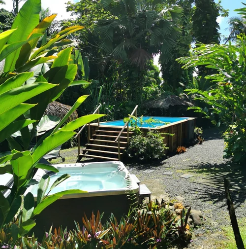 4 gîtes climatisés bénéficiant chacun d'une vaste terrasse ouvrant sur le parc et sa végétation luxuriante. Prévus pour accueillir de 2 à 4 personnes ils bénéficient d'une chambre, cuisine extérieure équipée et salle d'eau.